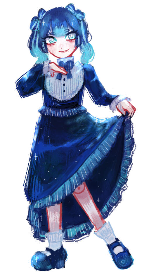 i'm a french neurodivergent artist who has a big heart full of love for games, horror and idols ദി_ .̫ _ᐡ꒱ i also really like bluemy sona / representative character is called Lune ! ( moon in french ) she's the character you'll most likely see the most on my account 🩵Lune is a life sized doll who has a living cat plush called "Miaou" ( french for meow )